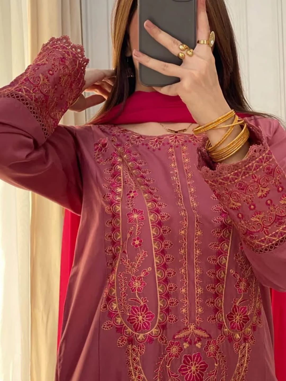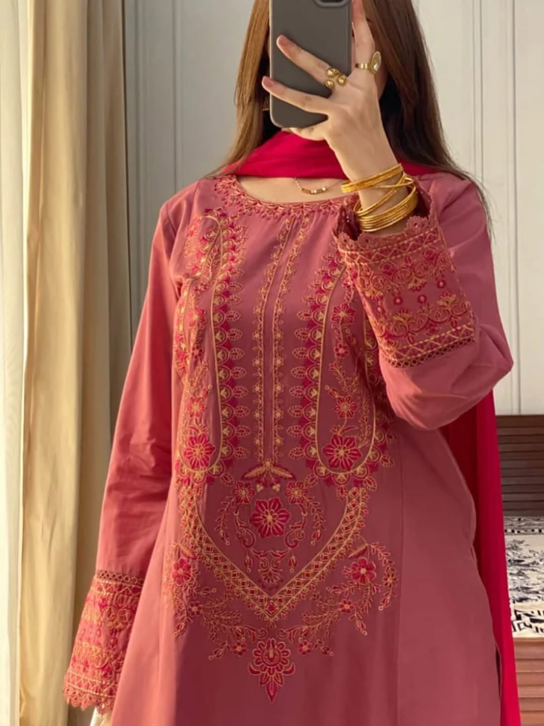 🌸 এক্সক্লুসিভ এমব্রয়ডারি থ্রি-পিস সেট 🌸